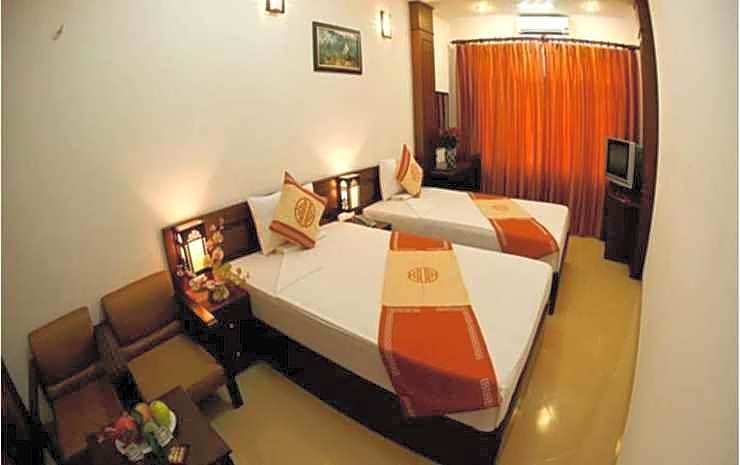 Large air-conditioned room features scenic views of Hanoi's Old Quarter. Includes a cable/satellite TV, mini-bar and private bathroom.